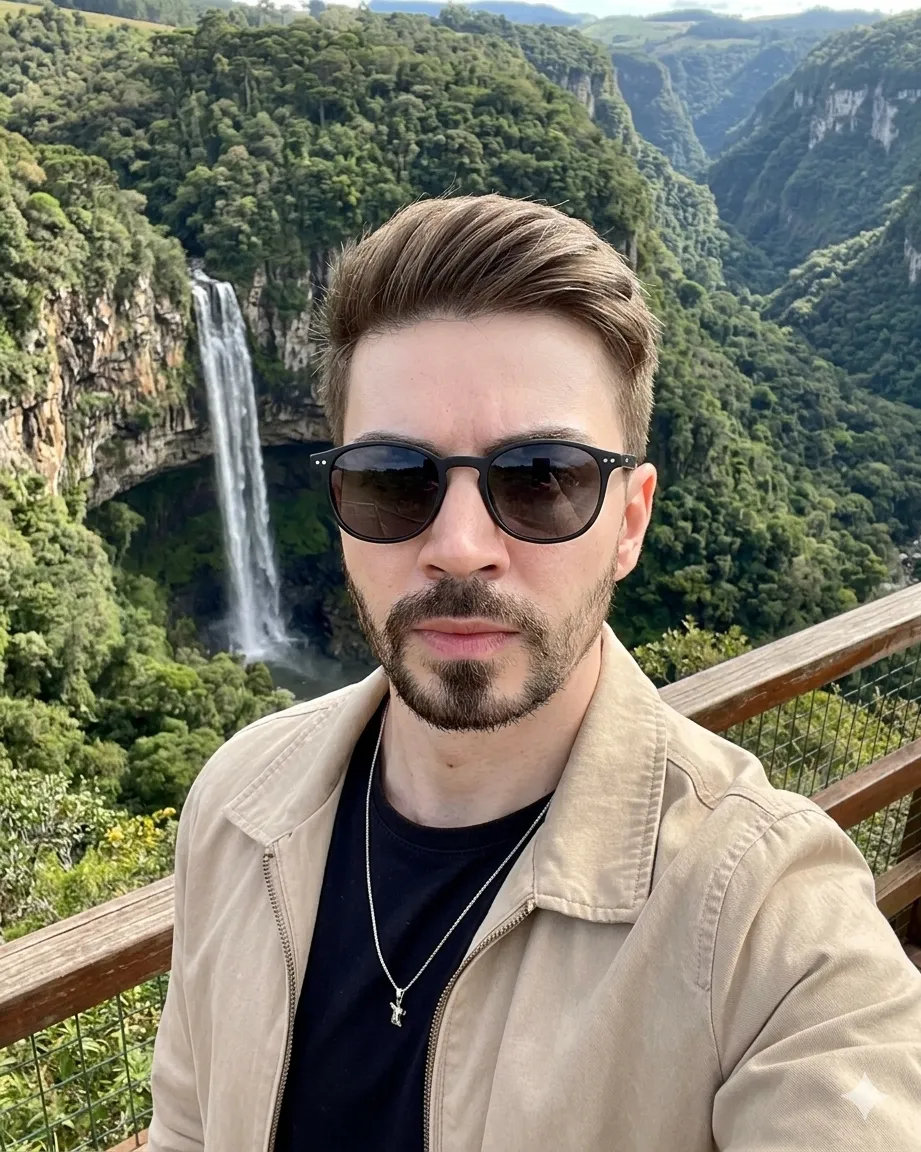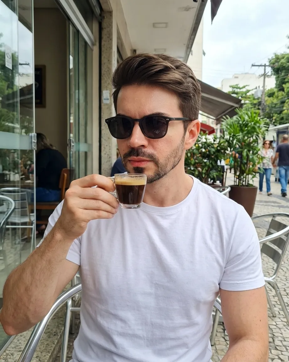 Hoje eu mesmo crio minhas próprias imagens com o visual que quero comunicar para usar em conteúdos, anúncios e páginas. Sem depender de ensaios. Sem bancos de imagem. E sem aquele resultado plastificado.